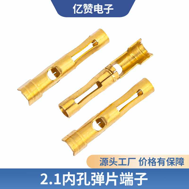 专业供应2.1内孔弹片端子五金弹片黄铜磷铜防水圆管连接器