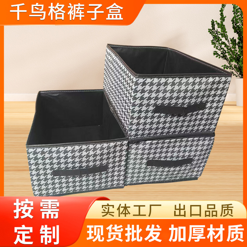 衣服收纳箱千鸟格家用衣柜裤子整理盒布艺箱子分层折叠神器储物框