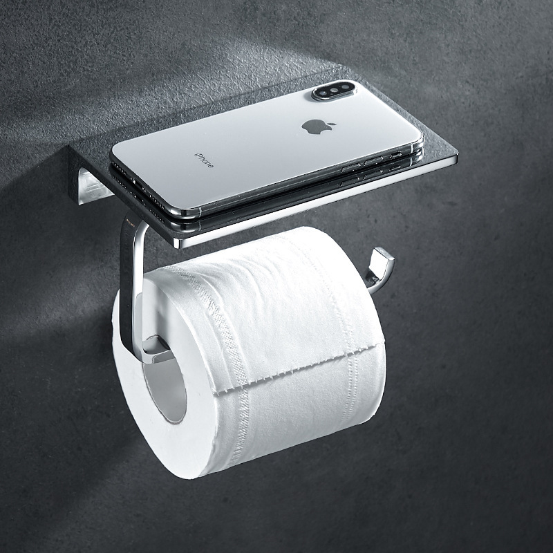 卫生间全铜枪灰色纸巾架厕纸架浴室手机置物架厕所纸巾挂钩卷纸架