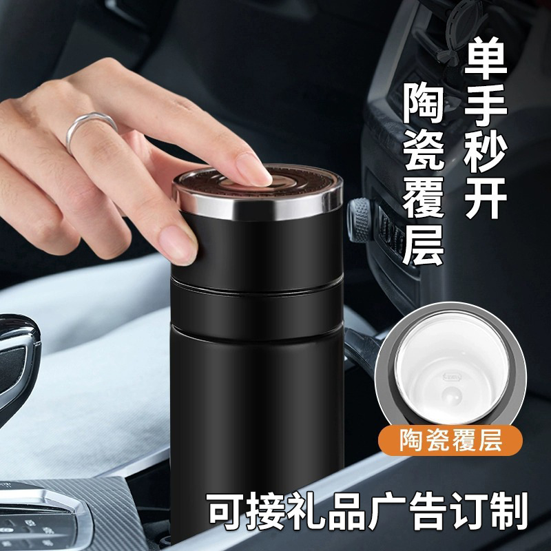 保温杯新款 男士车载按压一键开盖茶杯开车专用不锈钢陶瓷水杯