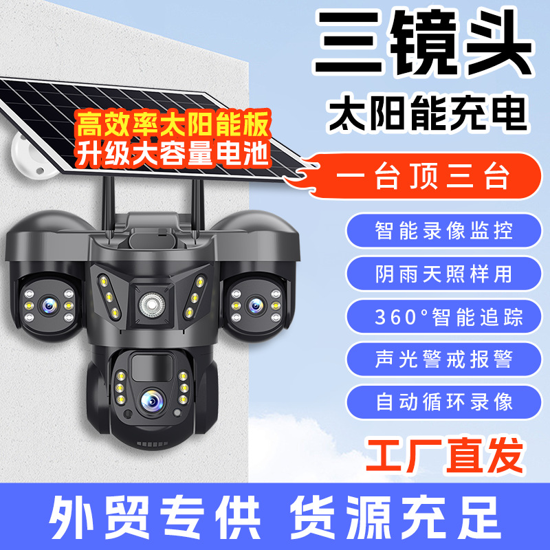 高清无线wifi监控摄像头跨境专供家用4G户外远程三画面全景摄像头