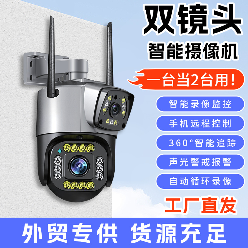 V380双画面摄像头室外无线高清夜视跨境分销枪球网络双镜头监控