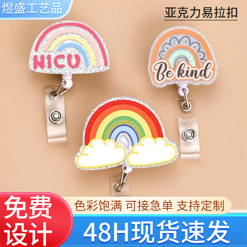 跨境护士胸牌亚克力伸缩易拉扣定制闪粉胸卡卡通易拉扣定做文创礼