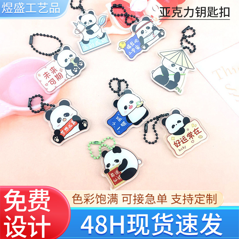 卡通熊猫亚克力钥匙扣未来可期平安快乐一举高中字牌双面书包挂件