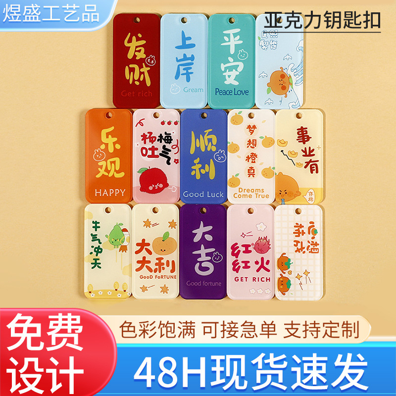 亚克力双面文字钥匙扣招财幸福安康吉祥字牌包包挂饰手工DIY定 制