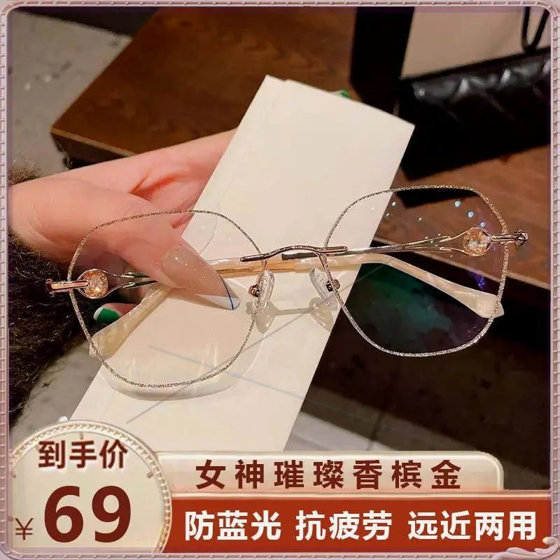 时尚优雅女神璀璨香槟金无框眼镜女时尚老花镜防蓝光
