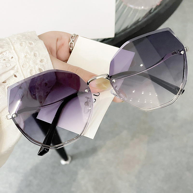 欧美时尚多边形切边无框太阳镜女韩版大框圆脸街拍网红气质墨镜潮