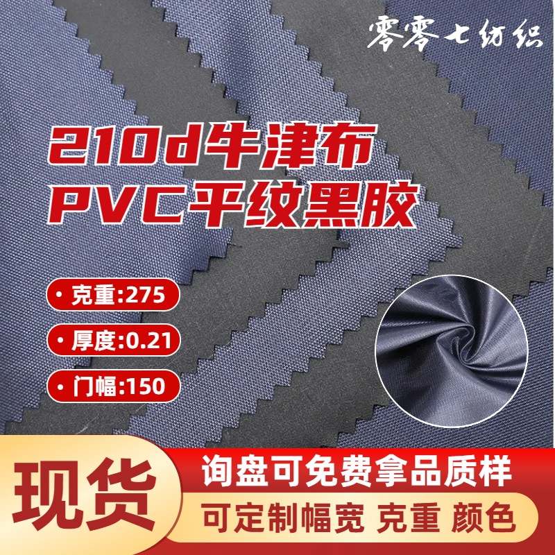 现货量大价优210D牛津布PVC平纹黑胶涂层防水雨衣雨披面料牛津布