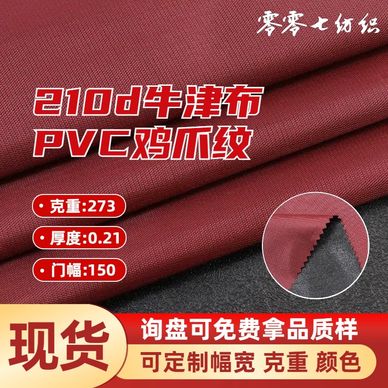 自产自销牛津布PVC鸡爪纹黑胶涂层防水雨衣雨披面料210D现货