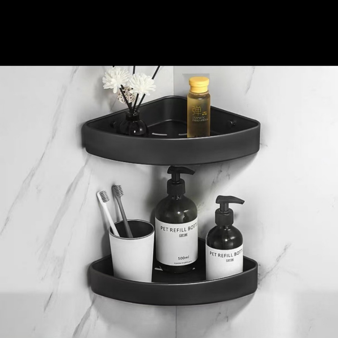 定制卫生间单层转角架卫浴三角蓝免打孔黑色浴室置物架铝角篮壁挂