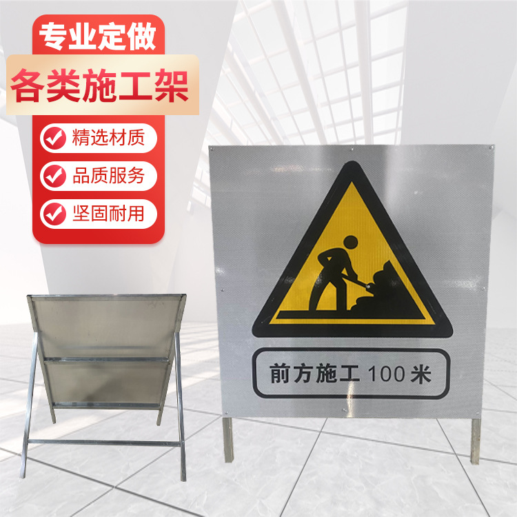 厂家道路施工牌安全警示牌 不锈钢三角前方道路标志牌架子指示牌