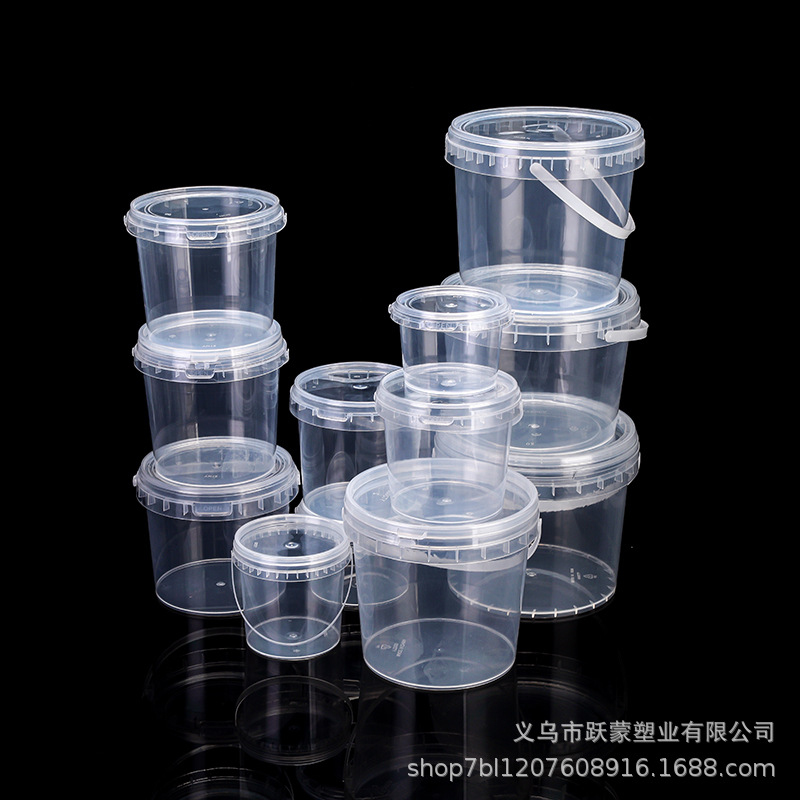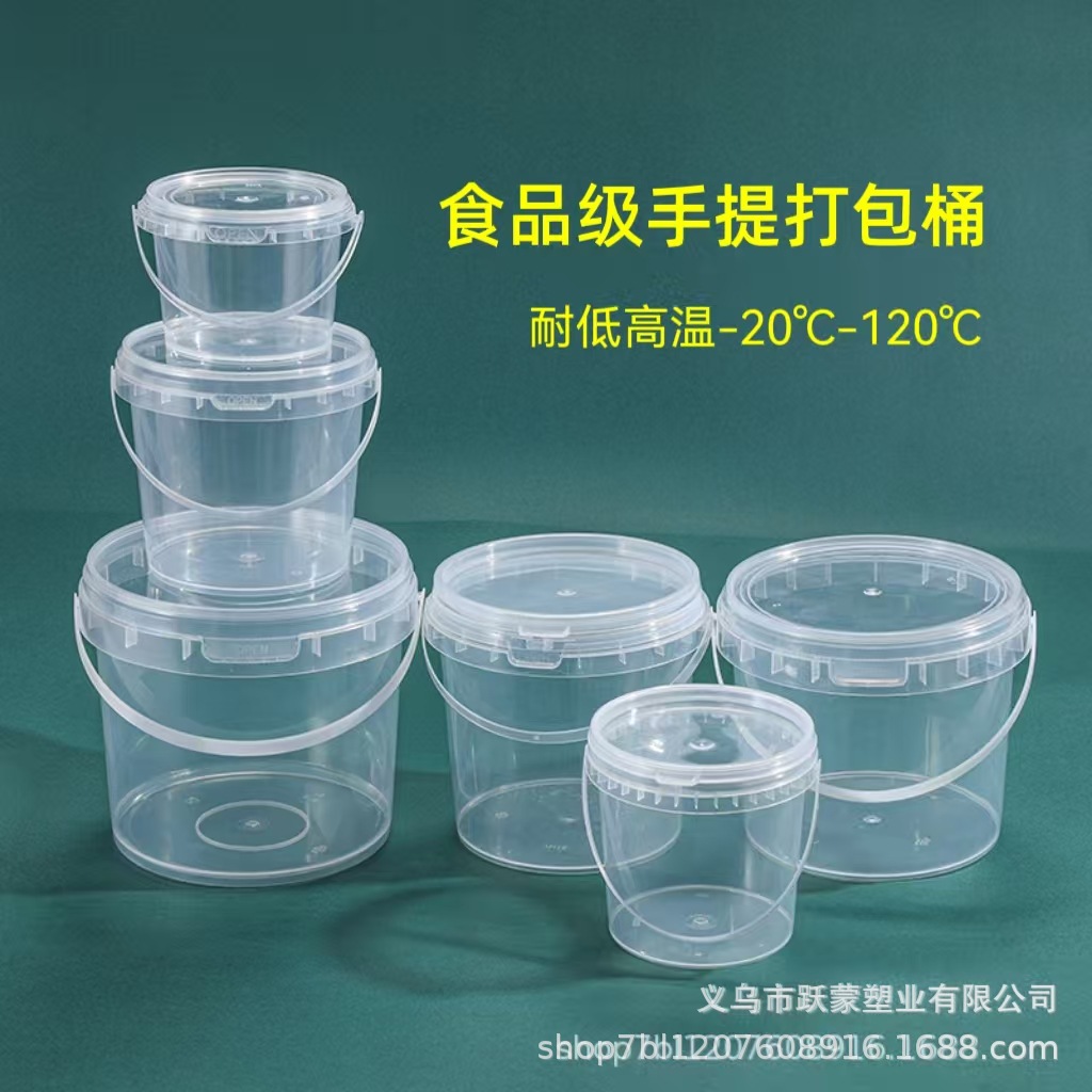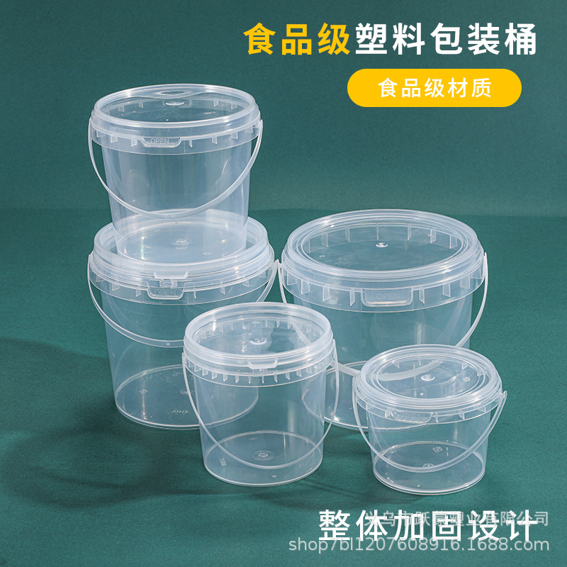 圆形塑料桶防潮密封酱料小水桶食品级透明带盖包装桶耐高温打包桶