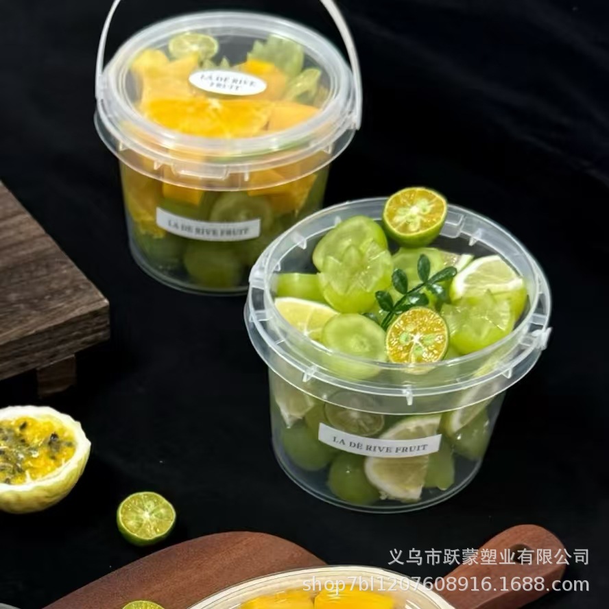 食品级手提酸奶水果捞打包桶透明耐高温烤梨桶带盖密封商用包装桶