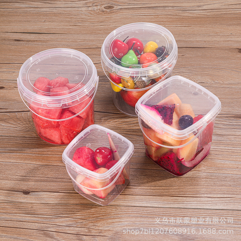 食品级透明水果桶手提0.3-5L方形塑料桶带盖耐高温打包桶密封方桶