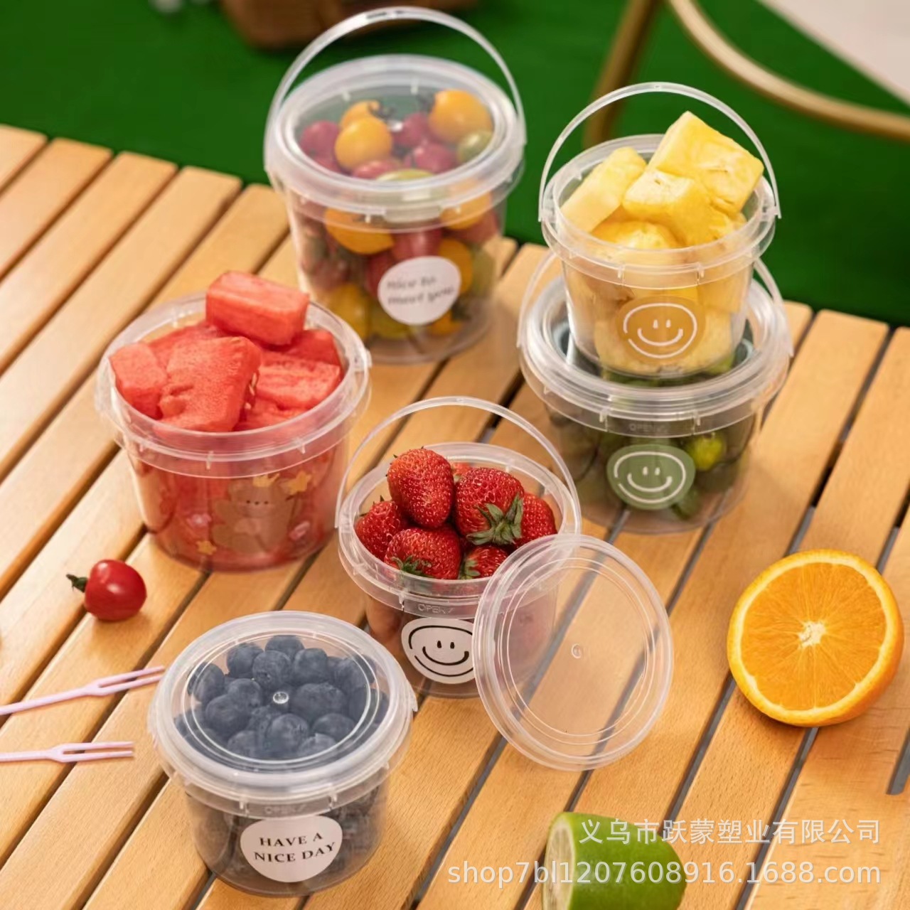 食品级pp手提塑料小圆桶水果捞奶茶带盖打包桶食品零食透明收纳桶