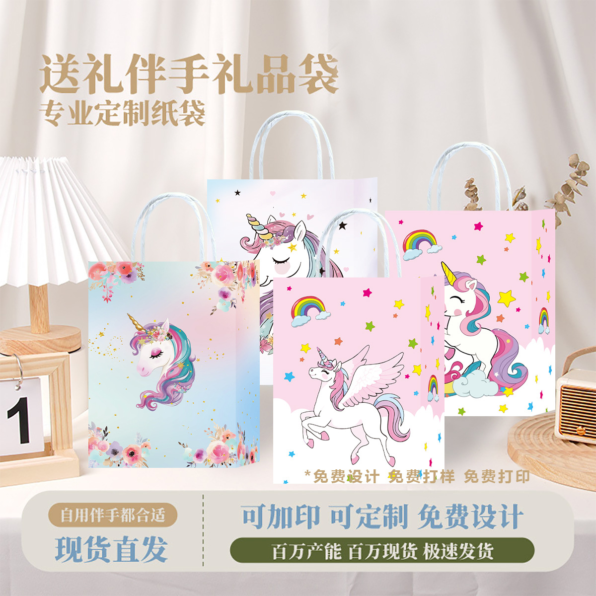 跨境纸袋手提袋 彩色花卉独角兽礼品袋子手提高级感创意 礼袋伴手