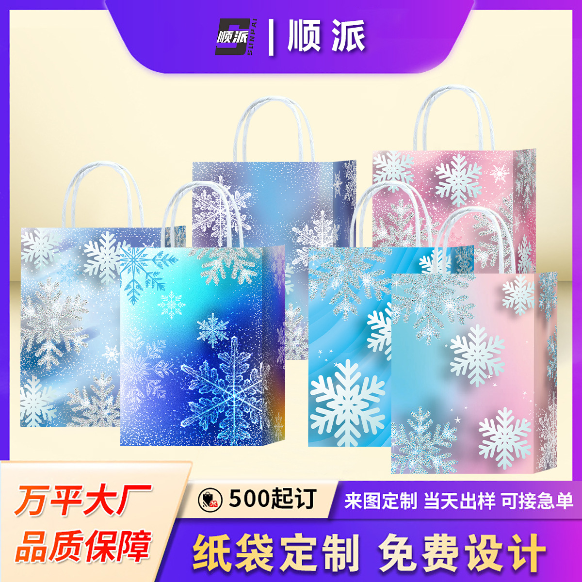 跨境纸袋手提袋 梦幻亮色雪花手提纸袋 购物派对牛皮纸袋礼物包装