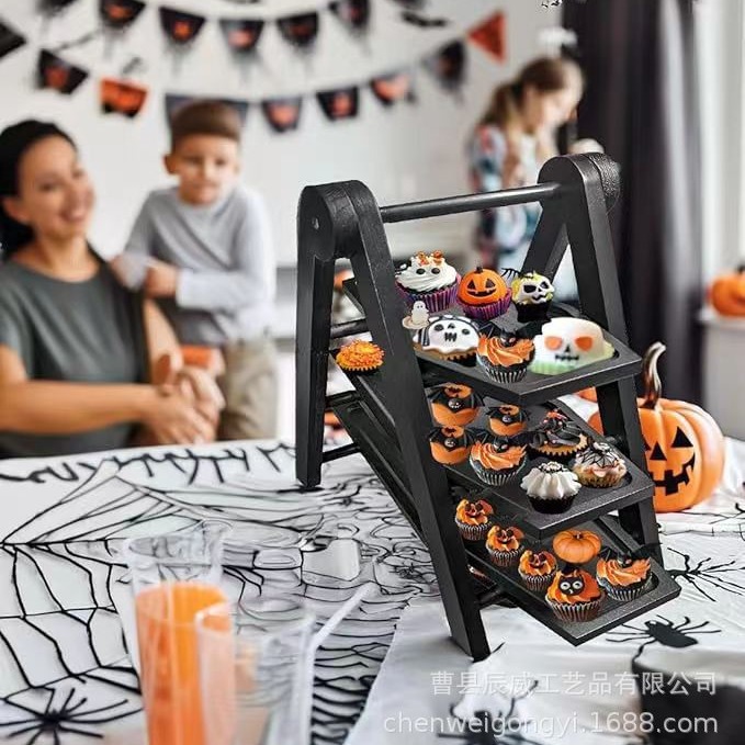 万圣节主题棺材造型木托盘三层水果蛋糕餐盘职务收纳架托盘展示架