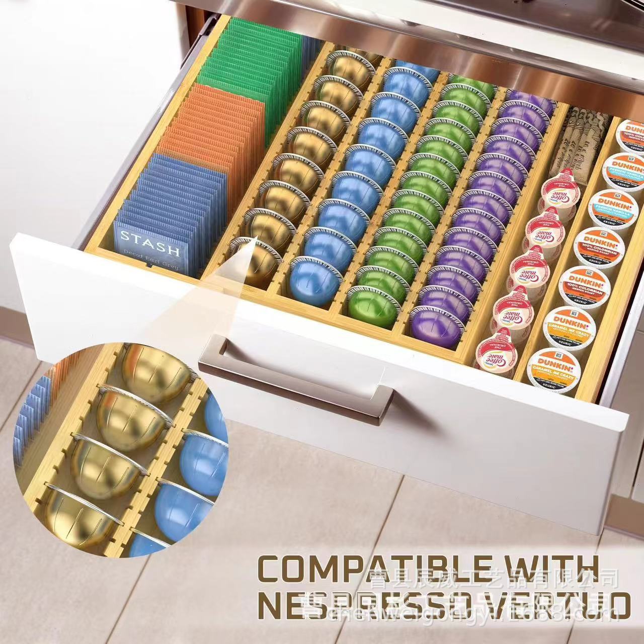 竹木咖啡胶囊收纳盒茶水间茶包奶茶包储物盒厨房刀叉分类整理盒
