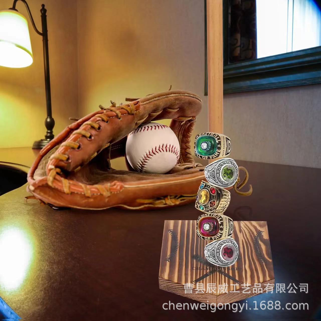 跨境桌面木制戒指首饰收纳展示架可堆叠收藏戒指架棒球戒指支架