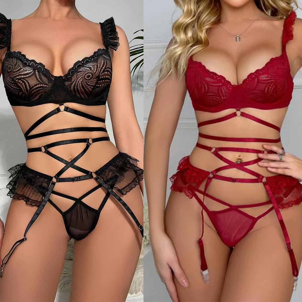 亚马逊爆款ebay货源欧美情趣内衣蕾丝心形吊袜带情趣套装性感