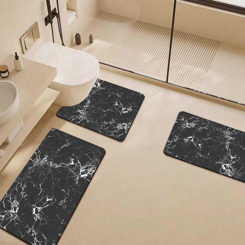 马桶易打理u型脚垫浴室硅藻泥轻奢吸水防溅大理石地垫耐脏三件套