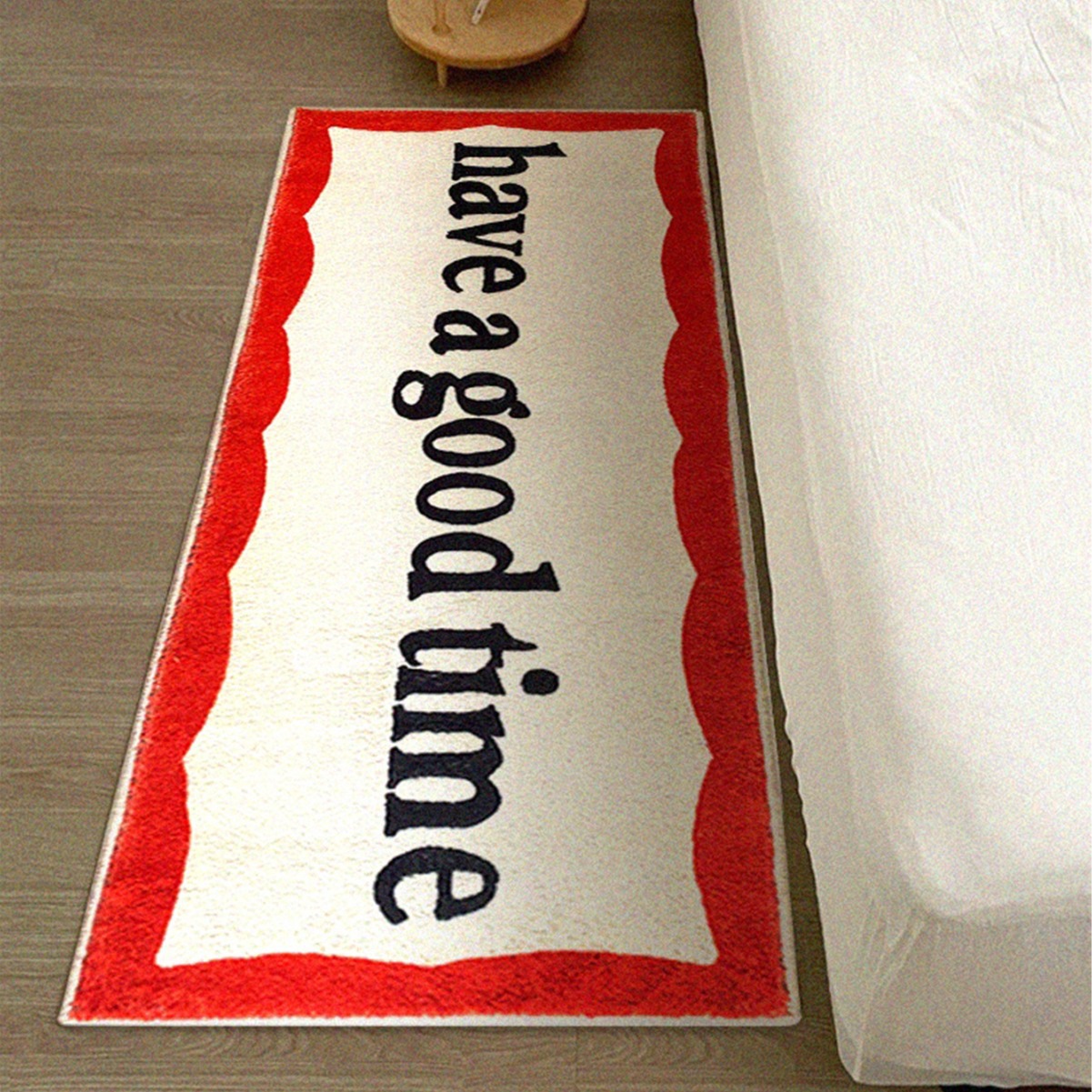 ins风红色字母床边毯家用房间卧室长条地毯窗户阳台亲肤飘窗垫子