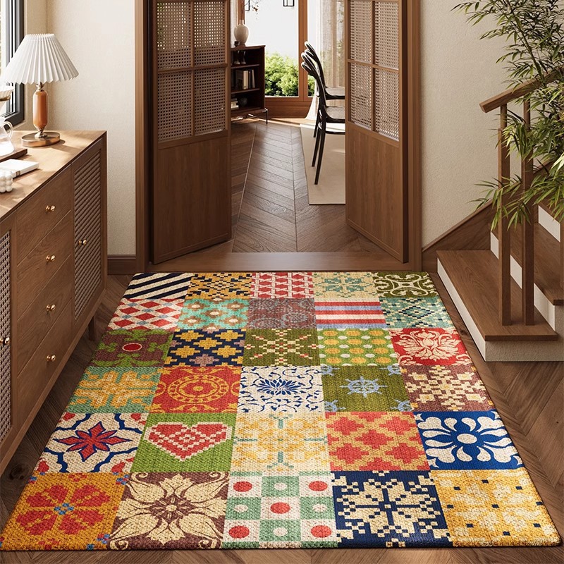 家用玄关复古美式地垫可水洗易打理耐磨耐脏水晶绒入户门脚踩垫