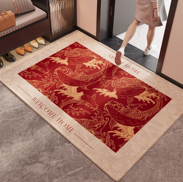 新中式新年喜庆入户门地垫家用防滑耐脏水晶绒地毯玄关吸水脚踩垫