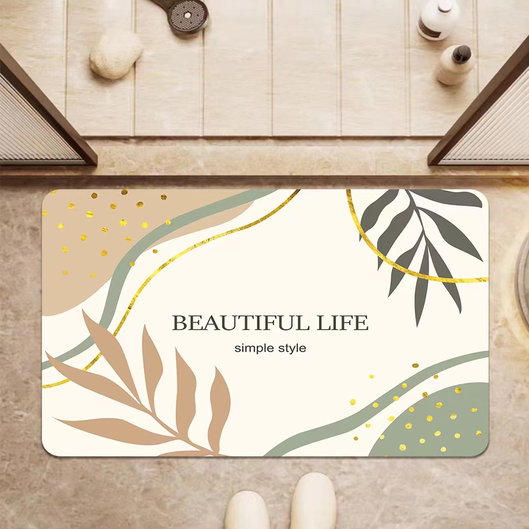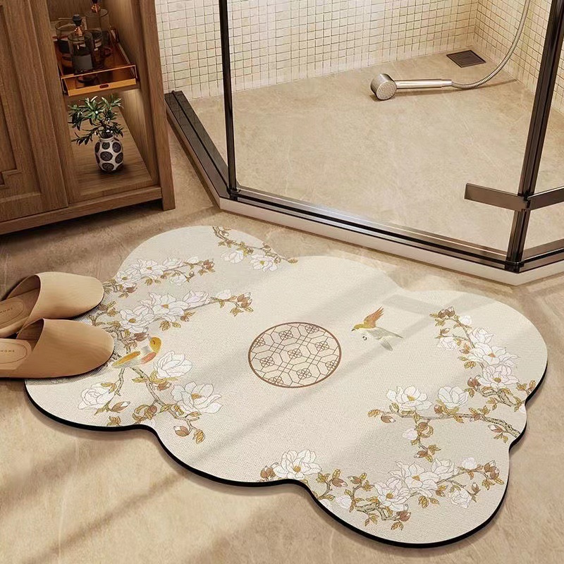 跨境轻奢花卉硅藻泥吸水垫家用防滑速干浴室地垫耐磨耐脏进门脚垫