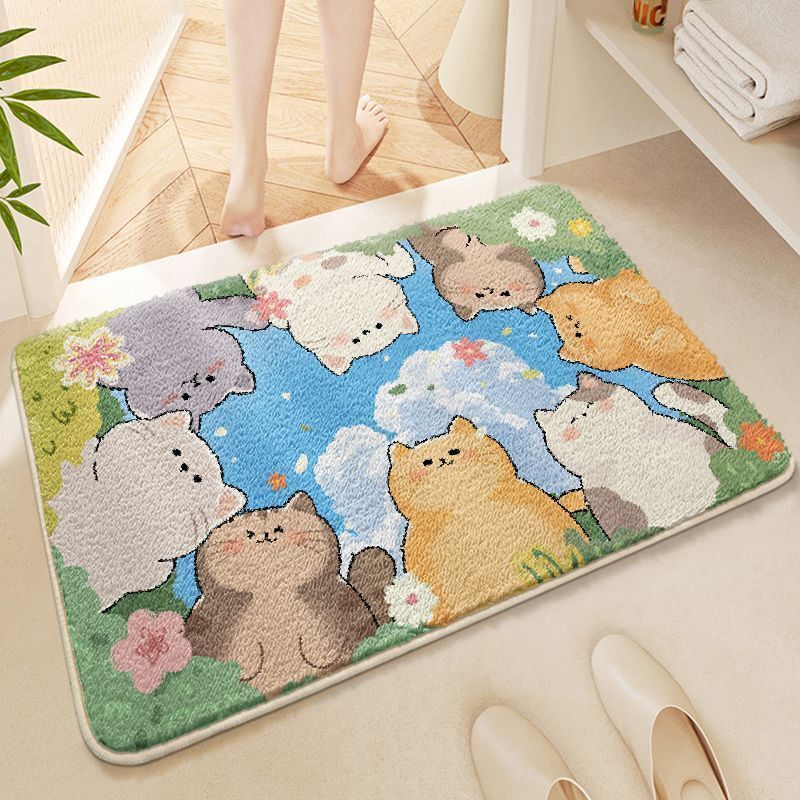 卡通可爱小猫软硅藻泥浴室地垫吸水速干防滑卫生间门毯厕所脚踩垫
