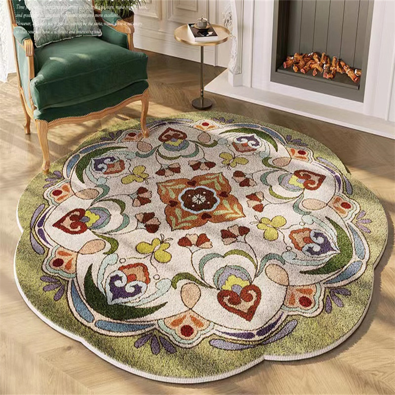 美式田园轻奢花卉客厅地毯地垫卧室床边毛绒脚垫衣帽间书房圆形垫