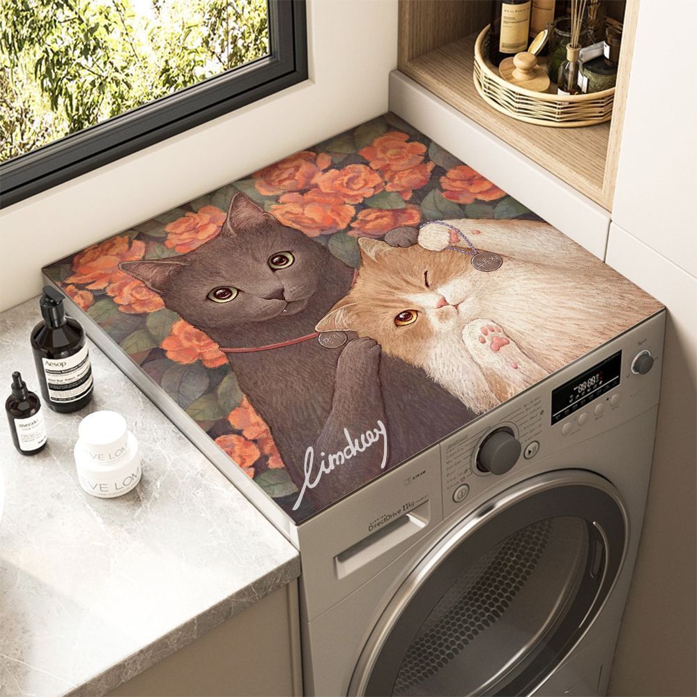 滚筒洗衣机垫油画猫咪盖垫硅藻泥盖垫双开门冰箱防晒防尘垫床头柜