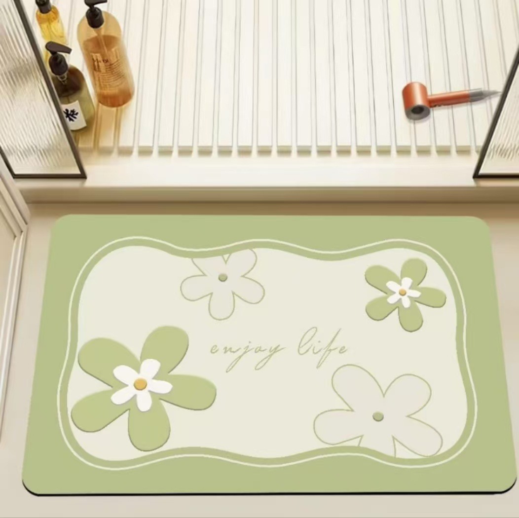 新款花卉硅藻泥地垫厨房浴室防滑可擦免洗脚垫家用耐脏吸水速干垫