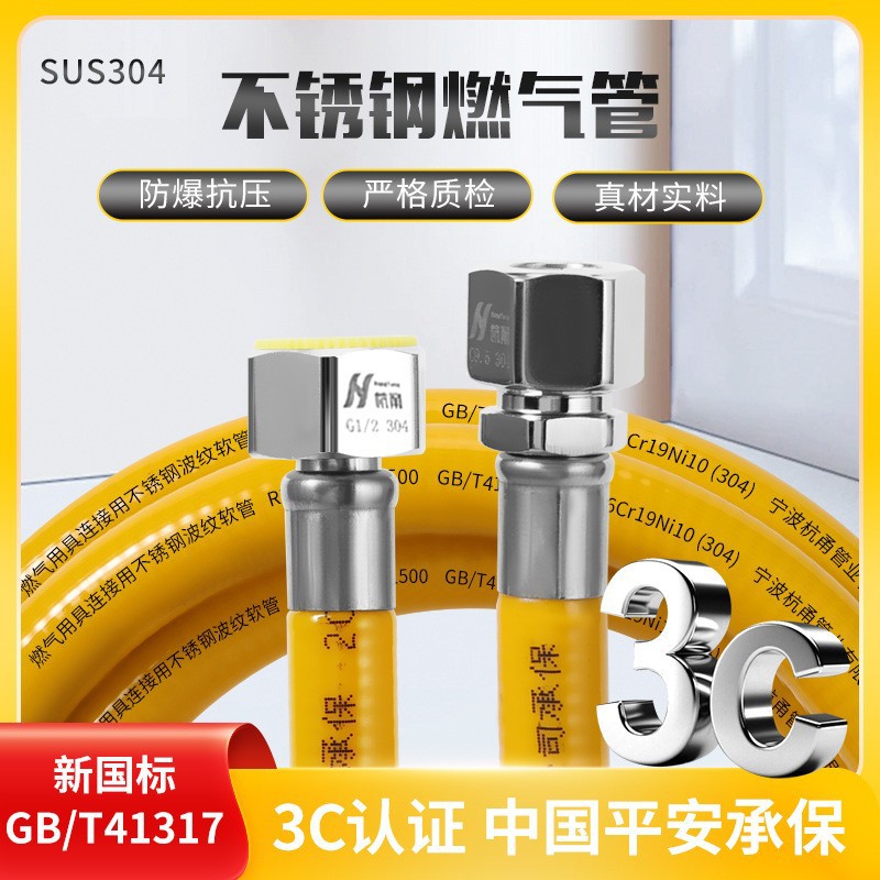 新国标防爆煤气管天然气液化气家用3分304不锈钢波纹燃气管