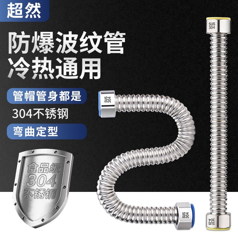 304不锈钢波纹管家用燃气热水器冷热进水管4分加厚防爆抗压进水管