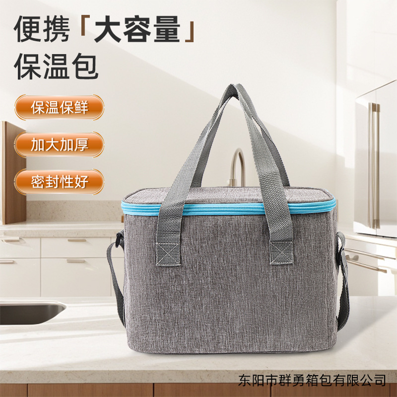 加厚保温袋高圆形户外便携帆布隔热铝箔四层保温饭盒便当包午餐包