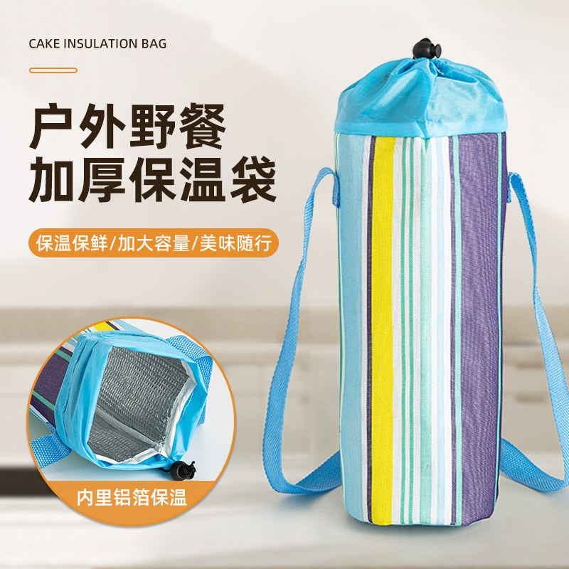户外野餐收纳包加厚保温袋高圆形便携帆布隔热铝箔四层保温便当包