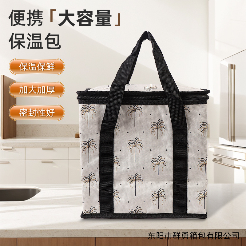 定制加厚保温袋高圆形户外便携帆布隔热铝箔四层保温袋带饭餐包