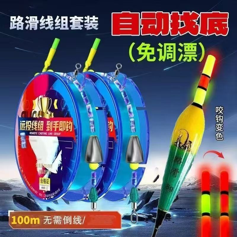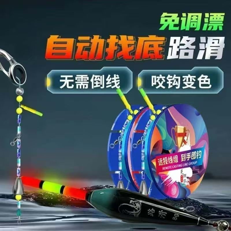 新款路滑线组套装 免调漂自动找底变色日夜两用挂钩即钓远投线组