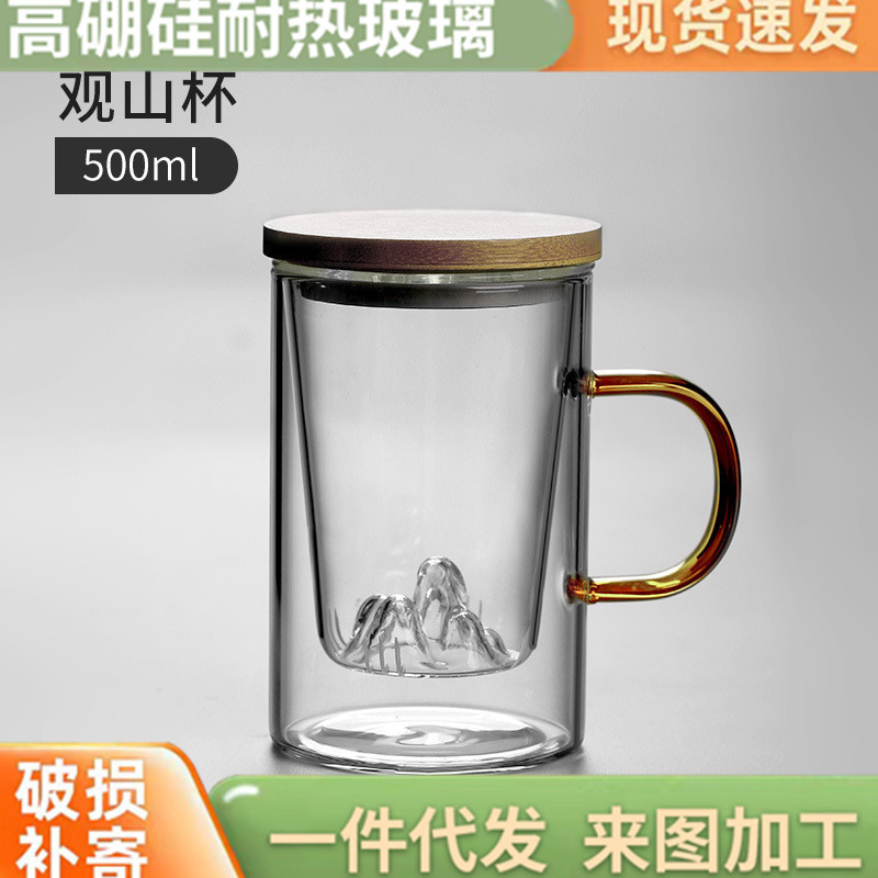 透明玻璃杯家用花茶杯耐热过滤带把手男女办公杯竹木盖玻璃泡茶杯