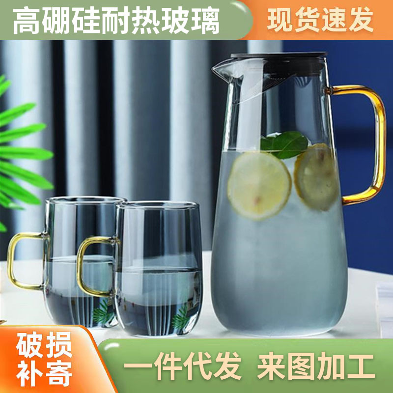 加厚凉水壶带把手简约高硼硅玻璃大容量直身扎壶玻璃冷水壶