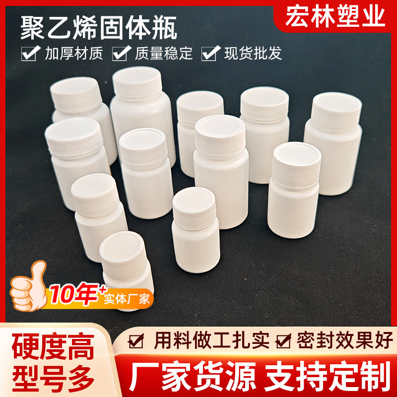 白色固体瓶放小药圆形分装胶囊瓶PE粉末避光分装瓶密封包装塑料瓶