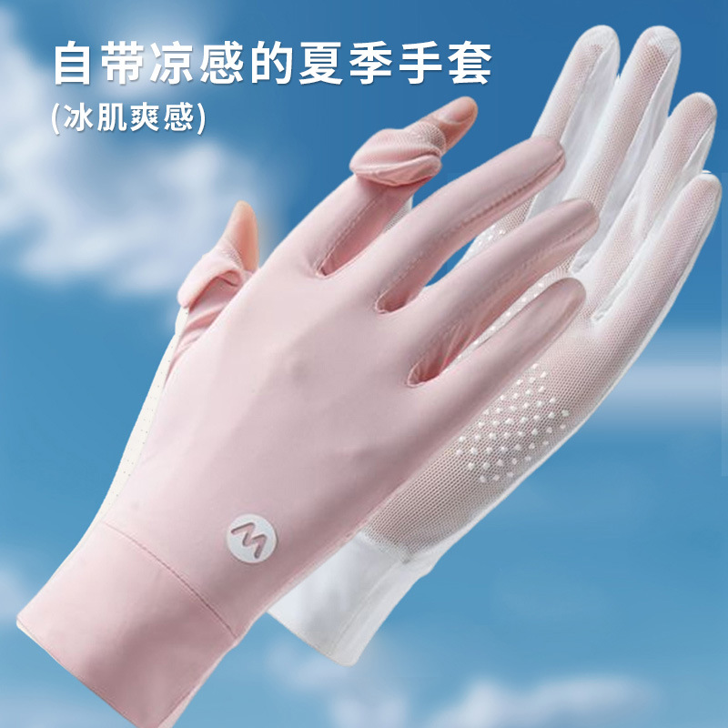 翻盖防滑触屏透气骑行女士夏季开车户外防紫外线全指冰丝防晒手套