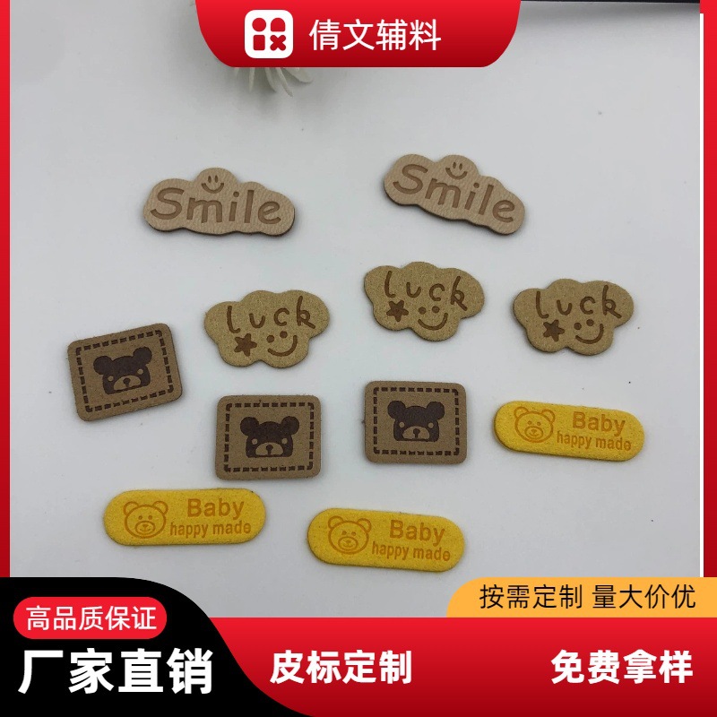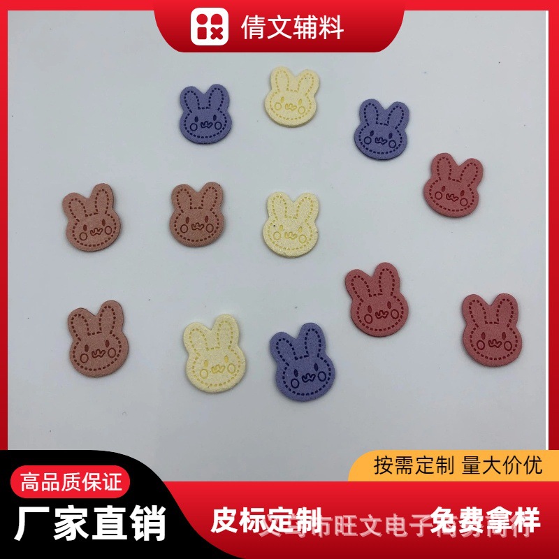 厂家直销卡通可爱熊头兔子异形皮标超纤手工配饰服装衣帽服装辅料