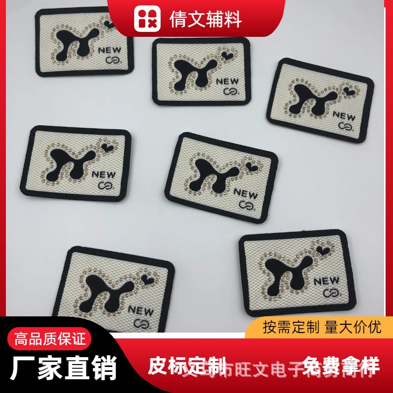 厂家直销皮标超纤标压花印刷皮革标满天星数码印箱包帽子服装辅料