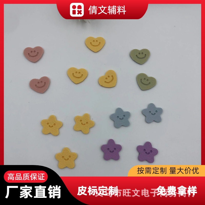 厂家直销新款笑脸皮标爱心皮标帽子手套围巾头饰装饰辅料商标批发