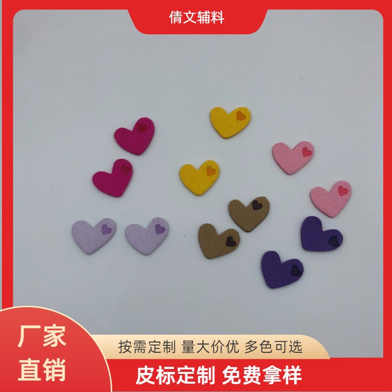 厂家直销超纤标签彩色双爱心手工缝纫围巾发夹帽子手套饰品配件标