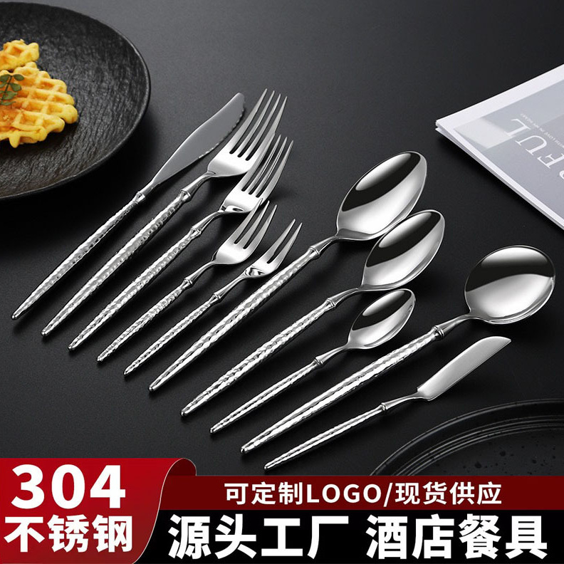 跨境网红爆款优雅锤纹305不锈钢餐具加厚勺叉 酒店牛排刀叉勺套装