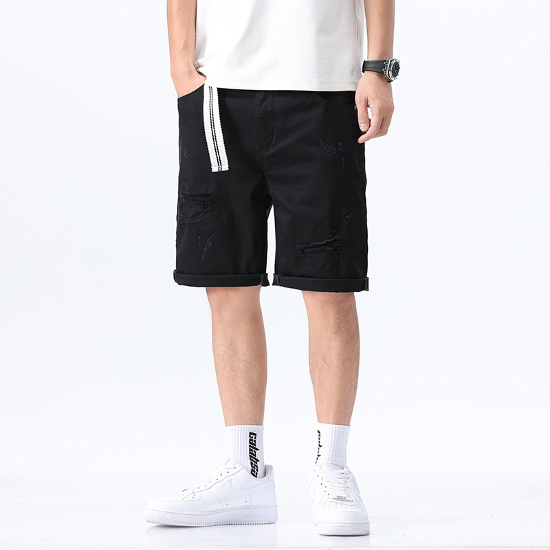 2025夏季新款男破洞休闲韩版五分裤美式百搭